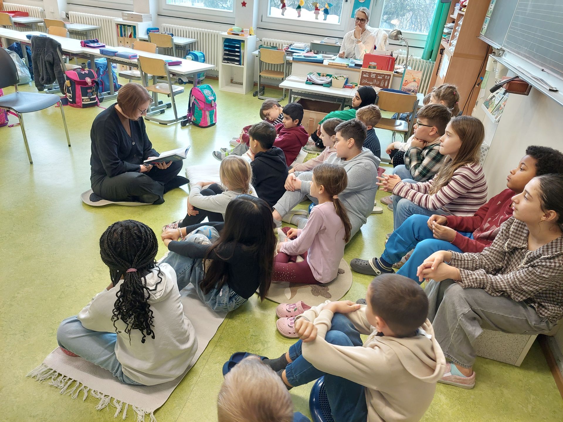 Im Rahmen des 22. bundesweiten Vorlesetags besuchte Staatssekretärin im Ministerium für Kultus, Jugend und Sport Sandra Boser, MdL, am 27. November 2025 die Eichrodtschule. Sie las den Kinder der Klasse 3a aus dem Buch "Zippel, das wirklich wahre Schlossgespenst" vor. Zur Freude der Drittklässler überreichte Frau Boser ein Exemplar des Buches für die Schulbibliothek.
