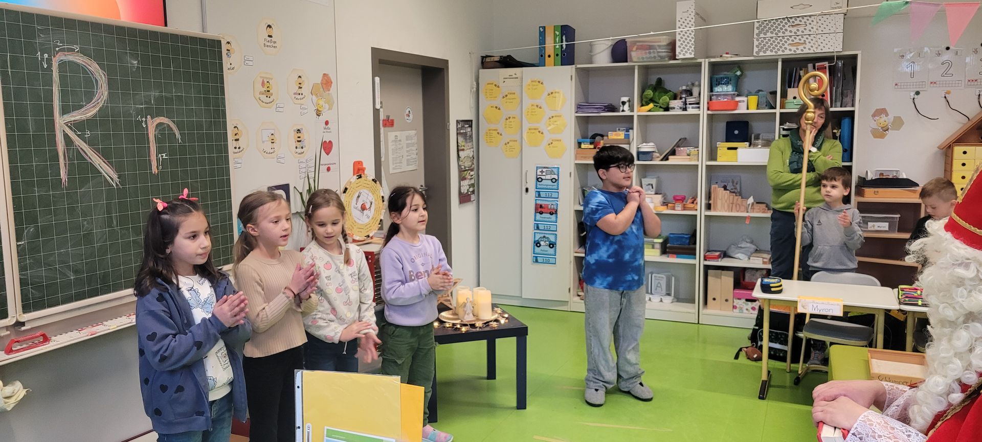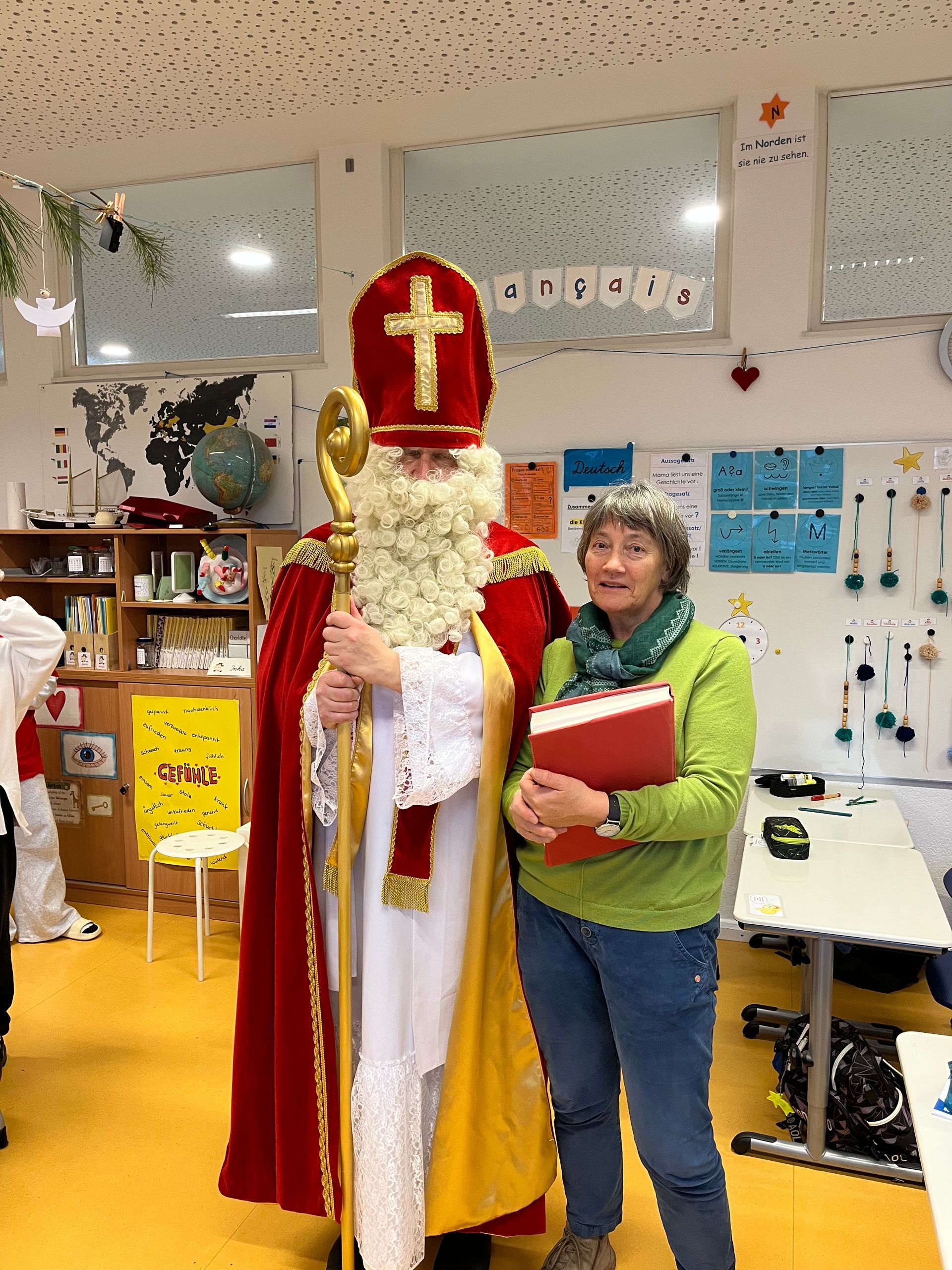 Am 8. Dezember bekam die Eichrodtschule hohen Besuch: Der Nikolaus gab sich die Ehre und stattete unseren Schülerinnen und Schülern einen Besuch ab. In seinem großen, roten Buch hatte er alles Wichtige zusammengetragen, was es aus den einzelnen Klassen zu berichten gab. Die Kinder erfreuten den Nikolaus ihrerseits mit Gedichten, Liedern und Tänzen. Als Belohnung gab es für alle einen leckeren Weckmann von unserem Freundeskreis. Herzlichen Dank für diese tolle Überraschung!