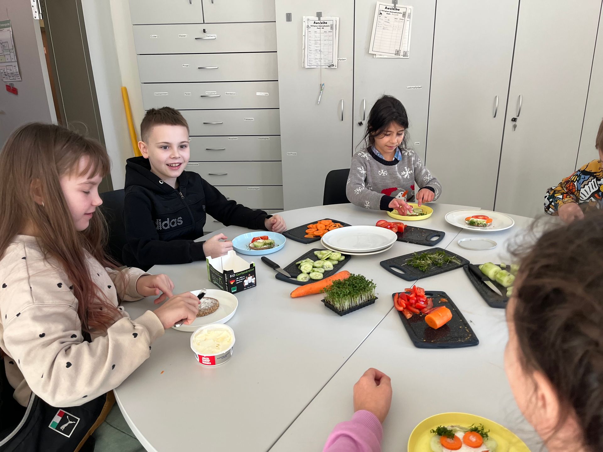 Ende November unternahm die VKL Klasse einen besonderen Ausflug. Die Kinder besuchten mit Frau Schwer und Frau DeKock den Markt und kauften Gemüse und Brot ein, um dann später und in der Schule lustige Brotgesichter zu zaubern. Es machte viel Spaß und schmeckte sehr lecker.