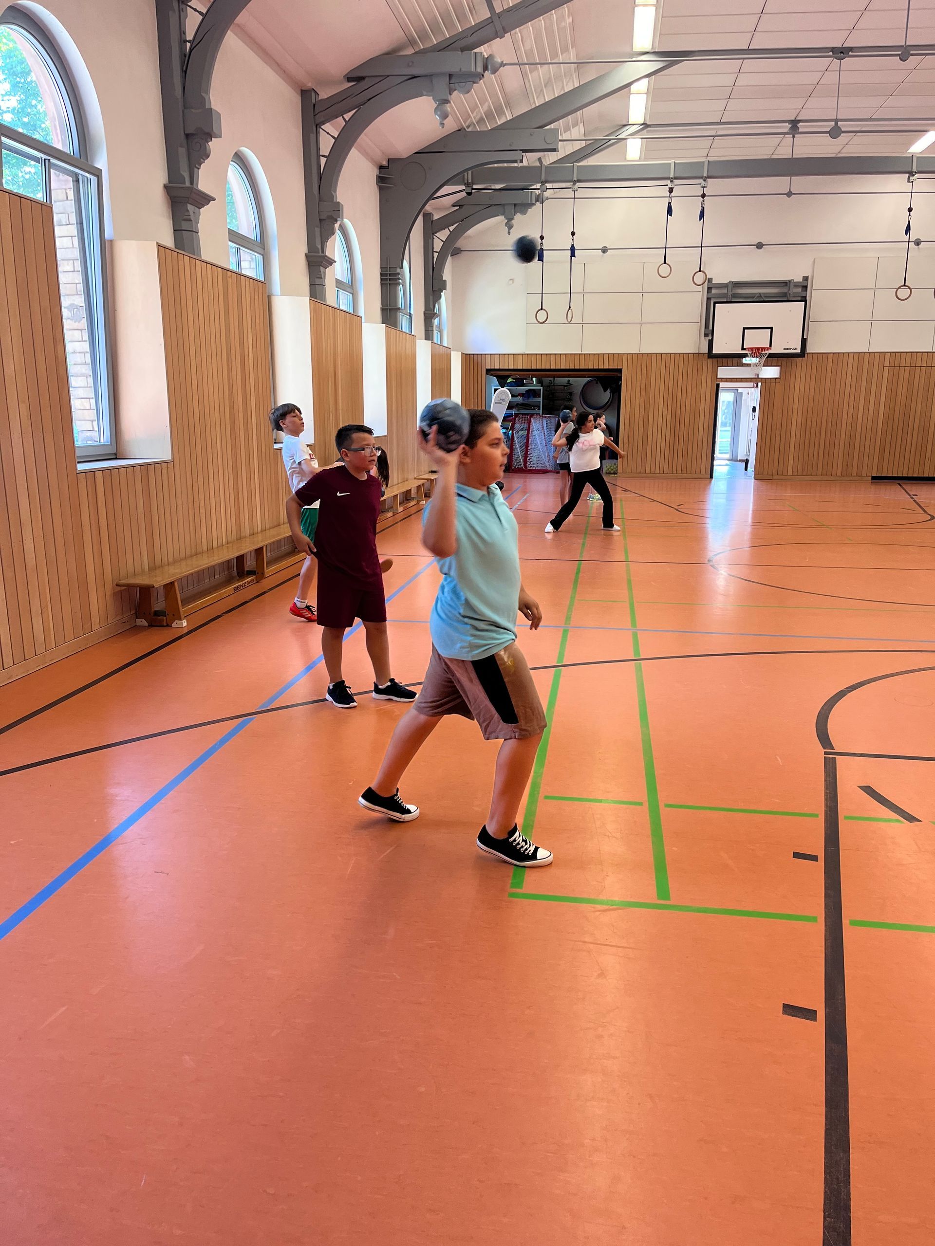 So kamen am 4. Juli auch unsere Viertklässler:innen in den Genuss, in Einheiten von jeweils 90 Minuten, handballspezifische Spiel- und Übungsformen kennenzulernen.