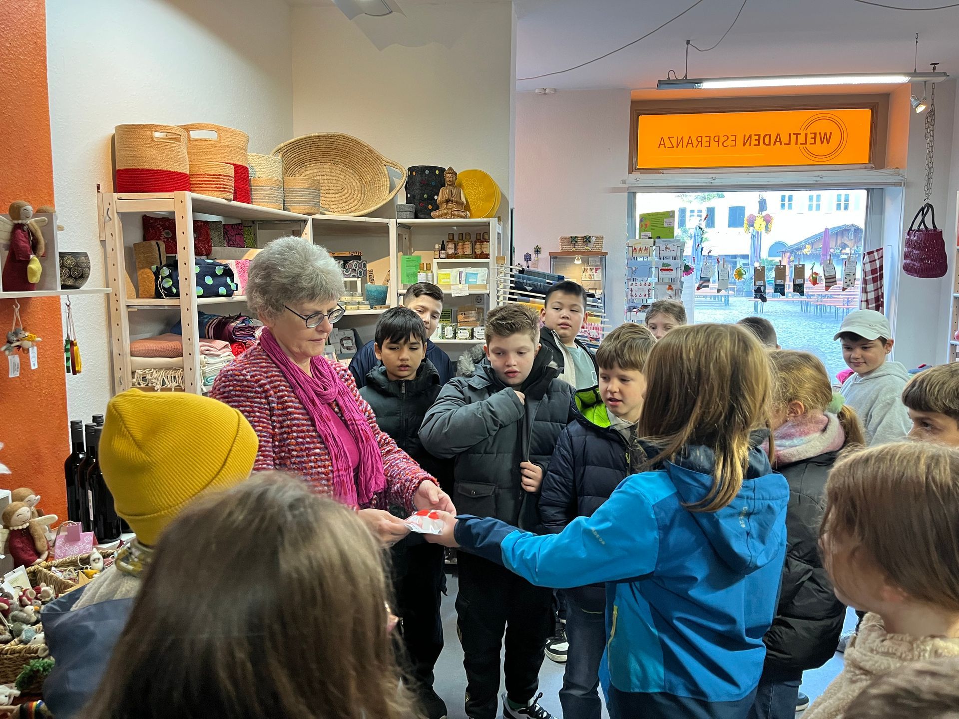 Im Rahmen des Sachunterrichtsthemas "Kinderrechte und fairere Handel" besuchten die Kinder der 4a den Weltladen in Lahr.